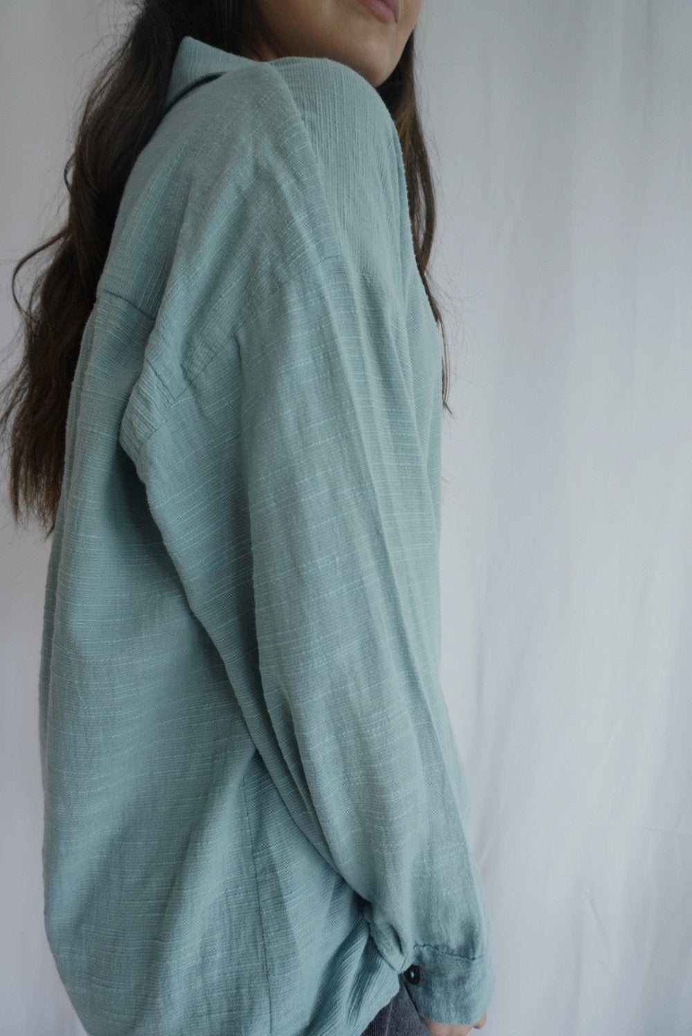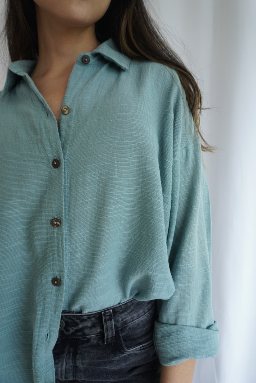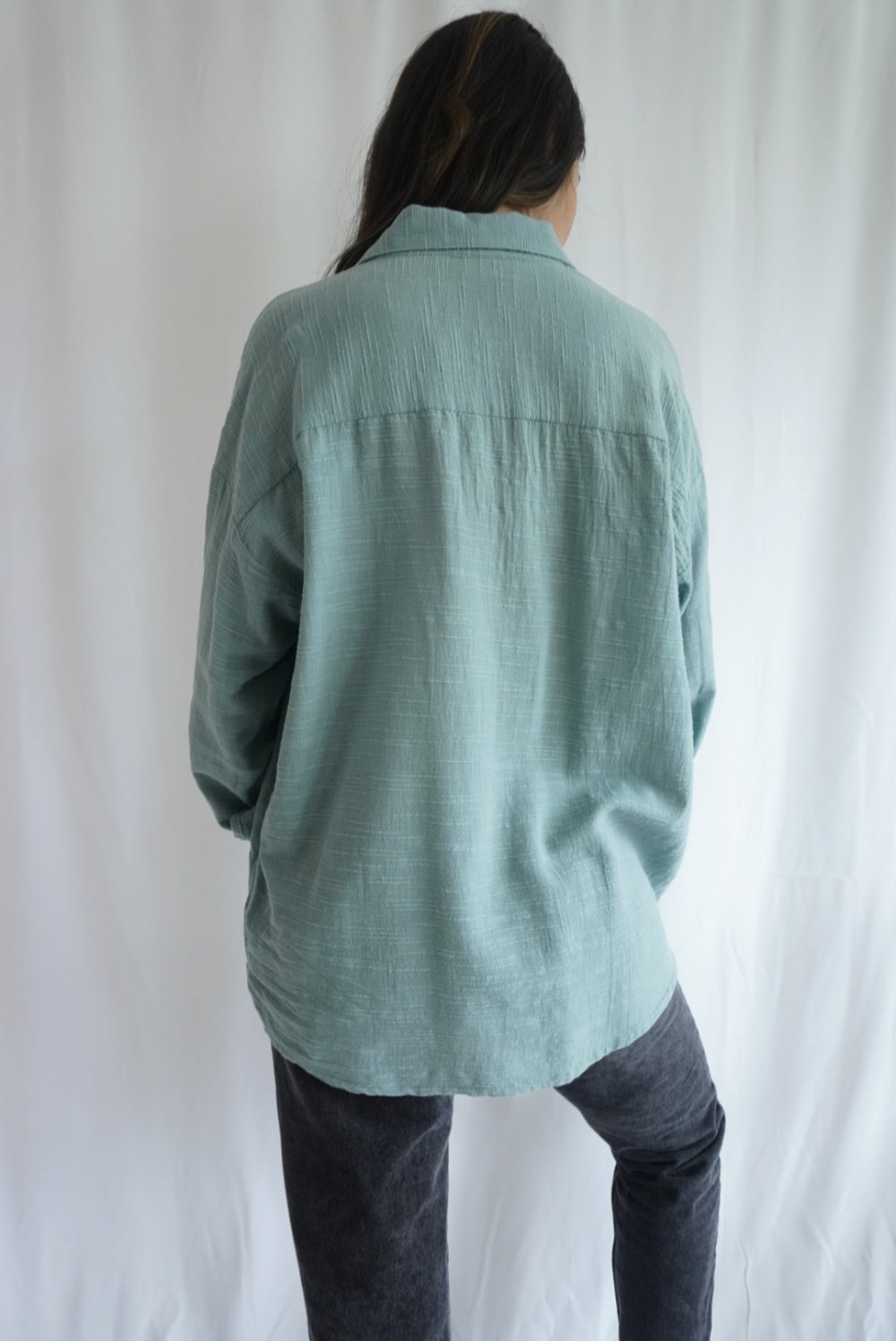 Camisa oversize confeccionada con tejido 100% algodón. Cuello solapa, manga larga y cierre frontal con botones. Perfecta para usar en el día a día, puedes combinarla de diferentes maneras: con unos jeans skinny o usándola sobrepuesta con un crop top y unos shorts.