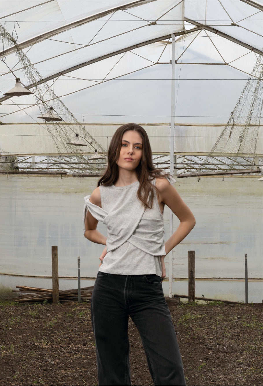 Con sus tiras adaptables, esta prenda transforma lo convencional y potencia tu creatividad ya que puedes usarla de diferentes maneras. Además, no solo estarás luciendo un estilo único, sino que también estarás contribuyendo al medio ambiente, ya que está hecha de botellas PET recicladas y algodón recuperado.
