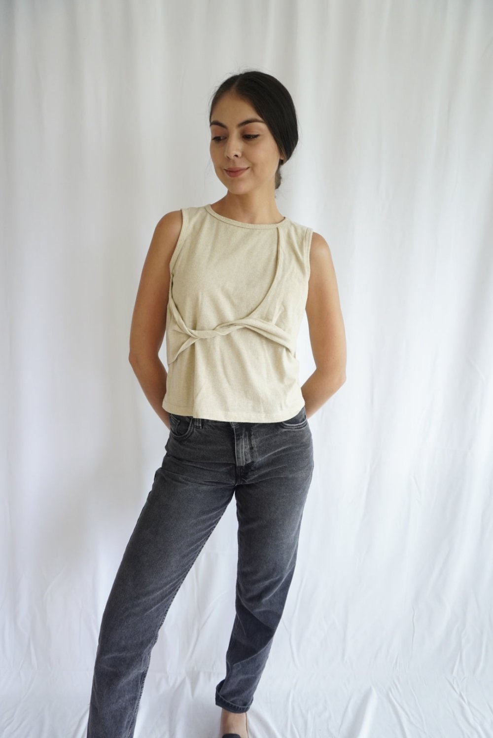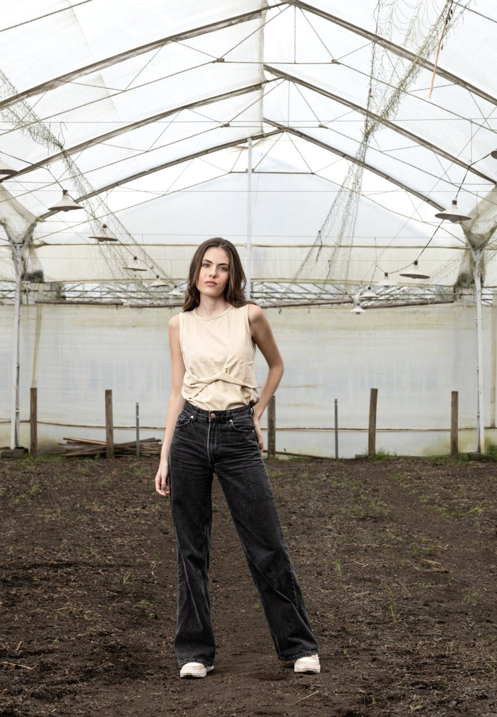 ¡Déjate envolver por el encanto de nuestra camiseta de manga sisa con un toque de estilo único! Destaca con su detalle torsionado en la parte delantera, agregando un toque diferente a tu look. Además, esta prenda está confeccionada con materiales reciclados, mostrando nuestro compromiso con la sostenibilidad. Su textura es fresca, perfecta para días cálidos.