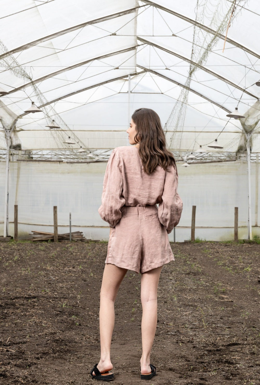 Experimenta la frescura y la elegancia del lino con nuestro Short Camelia, es de tiro alto con cierre lateral invisible y con pretina delantera con pliegues para darle un toque diferente a tu prenda. Combínalo con una camisa para un look formal o con una camiseta o crop top para un estilo más relajado. Este short es la opción perfecta para mantenerte cómoda y con estilo en los días de verano